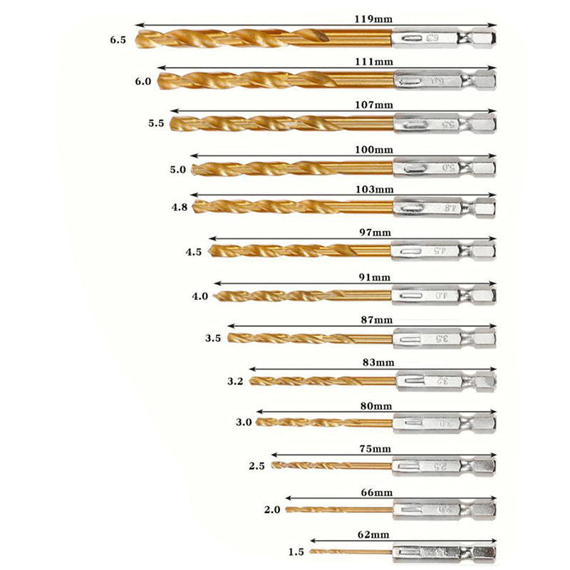 ⭐Tiger Claw Tool⭐13pcs HSS Hexagon Shank Drill Bits Set (1.5mm - 6.5mm) For Cordless Drill Screwdriver Hex Style (13Pcs)